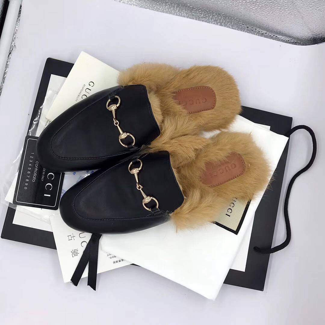 Papuci Nissa Stylish Cu Blana Naturala Negru Fashionup