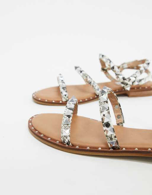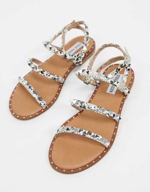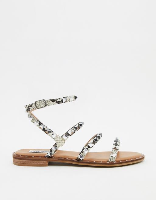 Steve Madden Travel Stud Flat Sandal In Natural Snake Asos